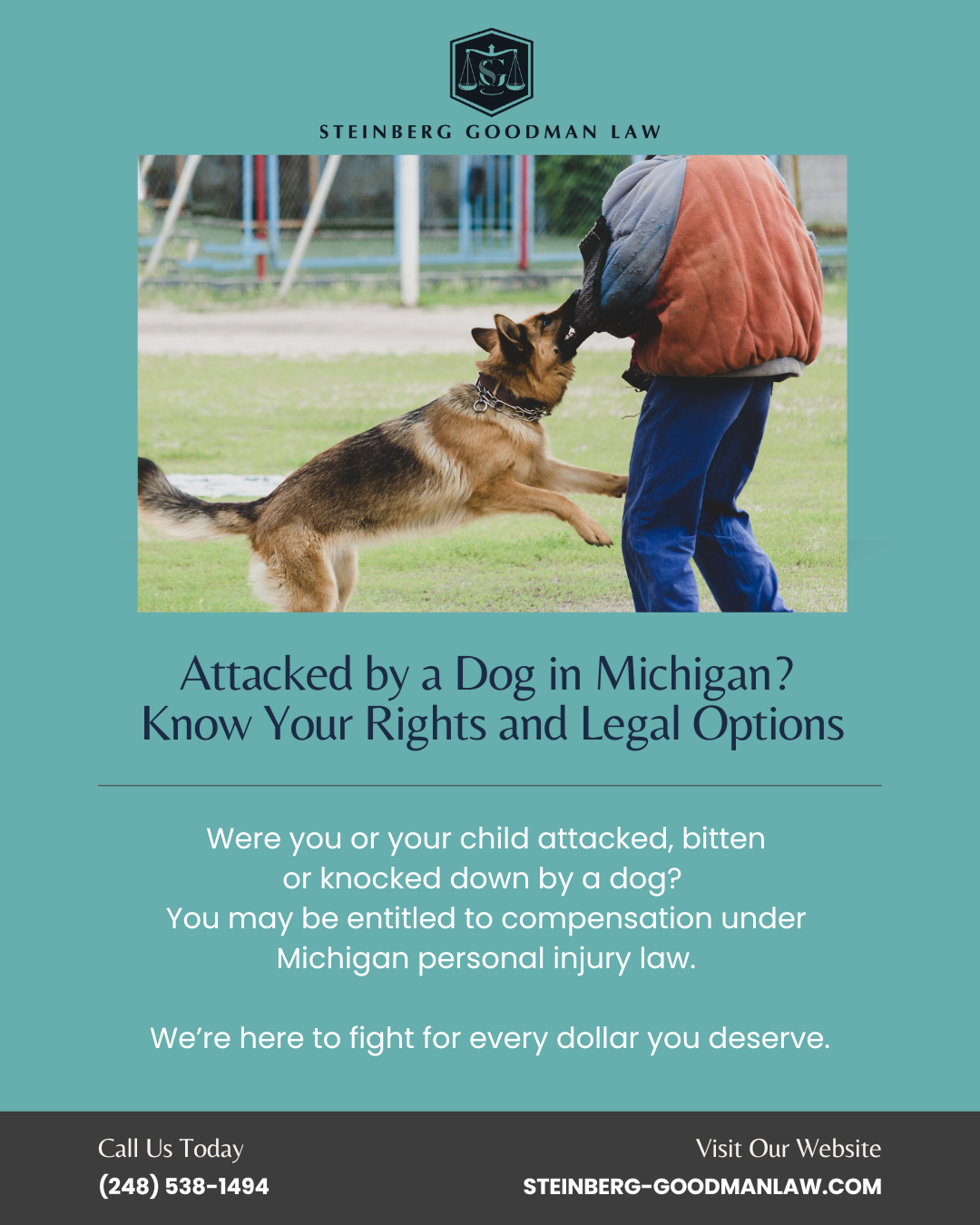 At Steinberg Goodman Law PLLC, we help people in Oakland, Wayne, Macomb, and Washtenaw Counties and beyond recover after painful, traumatic incidents like dog attacks or knockdowns. You might be wondering: